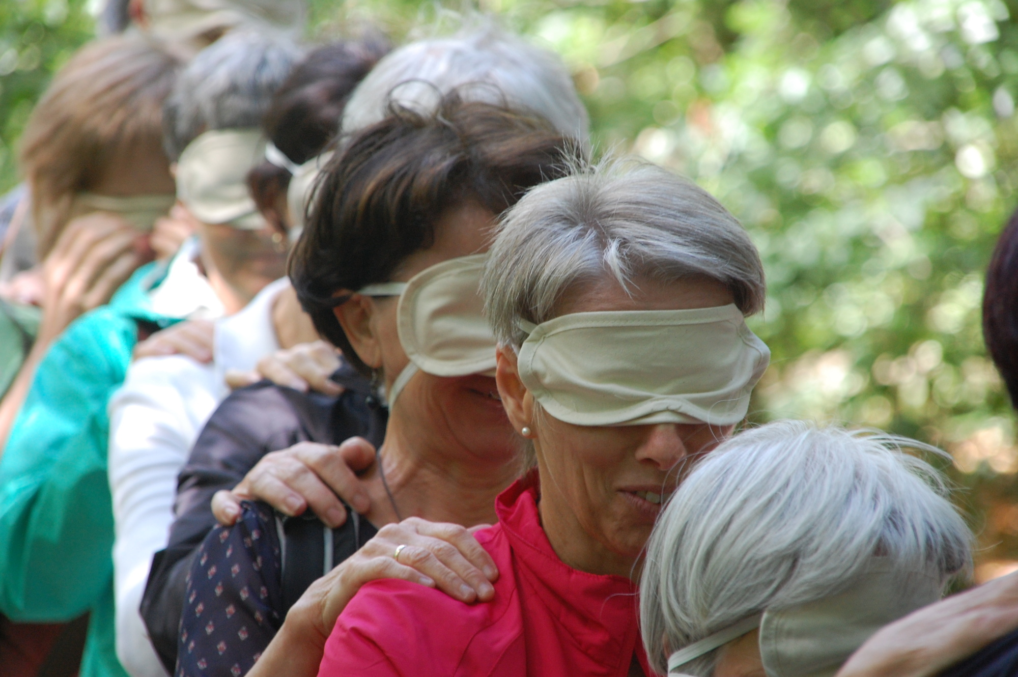 Wolfgang Graf ist von Beruf Förster, aber auch Natur- und Waldpädagoge. Als solcher hatte er sich gezielt zugespitzt auf unsere Gruppe und deren Bedürfnisse und Aufgaben im GesprächsLaden einige besondere Übungen einfallen lassen, z.B. "Blind gehen" (Augenbinde) oder "perspektivisch sehen" (mit Hilfe eines Spiegels durch den Wald gehen). Die Erfahrungen bewegten sich in den Bereichen "führen und geführt werden", "den Blick weiten", "sich mit der Natur verbinden", "Achtung und Respekt vor allem Geschaffenen", "ganzheitliche, vernetzte Kommunikation" u.a. - Mit dem Gedicht "Dr. Wald" machte Wolfgang Graf abschließend auf die besondere heilende Bedeutung des Waldes aufmerksam. Ein hilfreicher Tipp - wie er meint - für unsere Besucherinnen und Besucher im GesprächsLaden. Auszugsweise heißt es in diesem Gedicht von Förster Helmut Dagenbach, 1986: "Wenn ich an Kopfweh leide und Neurosen, mich unverstanden fühle oder alt, und mich die holden Musen nicht liebkosen, dann konsultiere ich den Doktor Wald. Er ist mein Augenarzt und Psychiater, mein Orthopäde und mein Internist. ... Er hält nicht viel von Pülverchen und Pille, doch umso mehr von Luft und Sonnenschein. Und kaum umfängt mich angenehme Stille, raunt er mir zu: "Nun atme mal tief ein!" ... Er bringt uns immer wieder auf die Beine, das Seelische ins Gleichgewicht, verhindert Fettansatz und Gallensteine, nur - Hausbesuche macht er leider nicht."