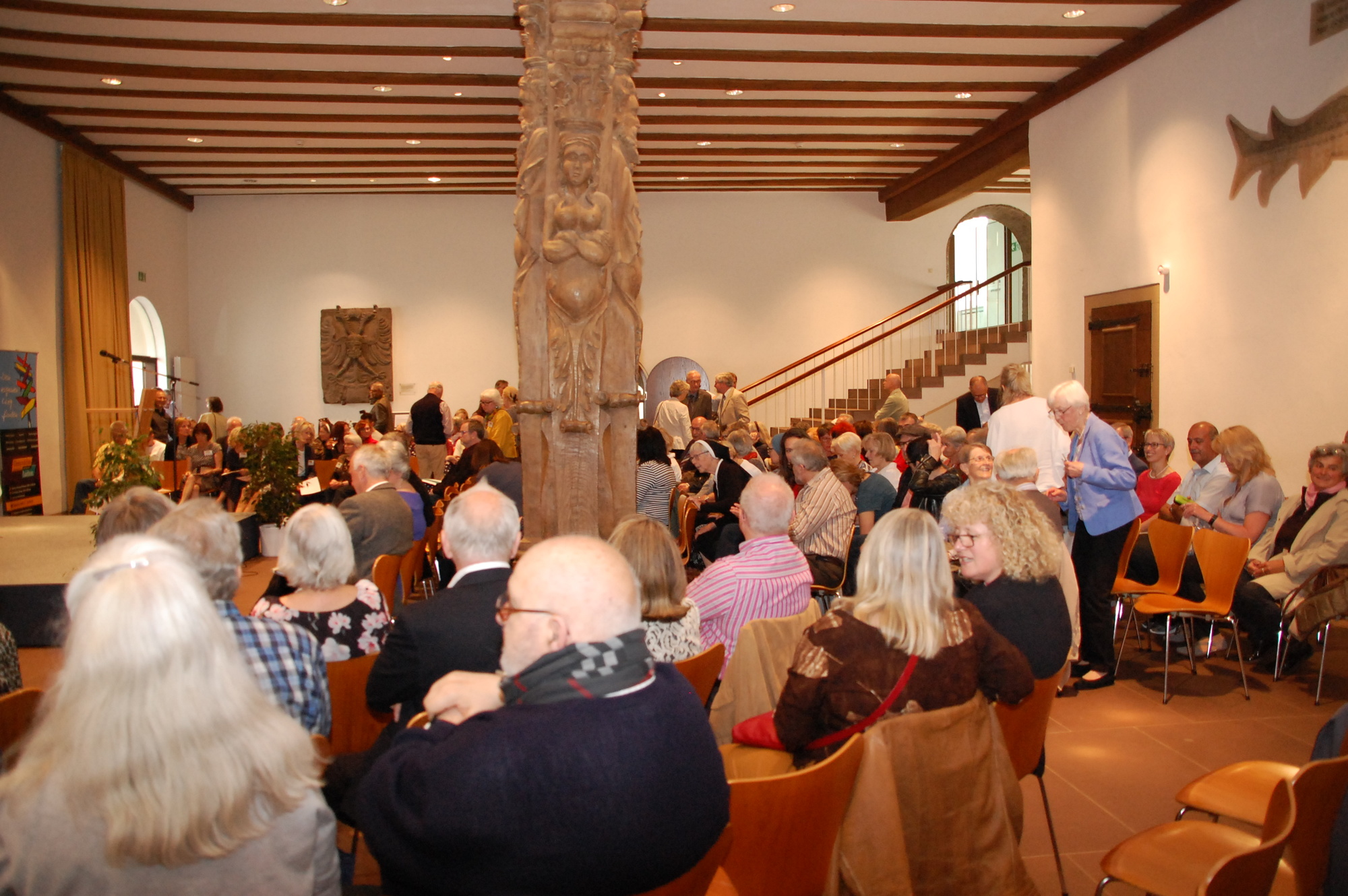 Mit etwa 190 begeisterten Gästen feierte der GesprächsLaden in der Rathausdiele Schweinfurt sein 20jähriges Bestehen. Zu Beginn stimmte Sebastian Knaub, Lehramtsstudent und Student der Musikhochschule in Würzburg, auf dem Piano musikalisch auf den Abend ein (Frederic Chopin Etüde Op 25 Nr. 11). Robert Bundschuh, der Leiter der Einrichtung, begrüßte die Gäste, darunter den Oberbürgermeister der Stadt Sebastian Remele', Herrn Pfarrer Pfarrer Heinz Röschert, der vor 20 Jahren gemeinsam mit den Mitgliedern der Seelsorgekonferenz den GesprächsLaden auf den Weg gebracht hatte, Frau Christine Endres (Bereichsleiterin für Diakonische Pastoral und Sonderseelsorge) als Vertreterin der Diözesanleitung, Herrn Stadtpfarrer Joachim Morgenroth, Herrn Prof. Dr. Wilhelm Schmid (Referent), zahlreiche ehemalige ehrenamtliche Kolleginnen und Kollegen u.v.m. In seinem Grußwort betonte Oberbürgermeister Sebastian Remele', wie wichtig es sei, dass es da Menschen gäbe, die Zeit hätten, Zeit zum Zuhören und Reden, ein heute seltenes Gut in einer eher überreizten Zeit. Bei allen Nöten, denen Kirche heute unterworfen sei, sei der GesprächsLaden ein leuchtendes Zeichen mittendrin mit positiver Ausstrahlung. Im Anschluss an das Grußwort präsentierten die Mitarbeiterinnen und Mitarbeiter ihre Arbeit, indem sie das Wort "GesprächsLaden" durchbuchstabierten. Das "G" etwa stehe für Gastfreundschaft, für eine Gastfreundschaft, die sowohl Besucher als auch Mitarbeiter als Geschenk erlebten. "Das E" - so ein Mitarbeiter - "steht für Erfahrungen und Erlebnisse, die Besucher mitbringen. Manche suchen Entscheidungshilfen, andere fühlen sich einsam und allein. Wieder andere sind deprimiert, traurig, verängstigt und haben ein starkes Erzählbedürfnis.- Grundlage des Gespräches sind E-Worte wie Empathie und Einfühlsamkeit." - "H wie Herzblut. Mit viel Herzblut sind wir für Menschen da, bieten Hilfe an, entfachen Hoffnung, wo Verzweiflung droht. Im Zuhören und Sprechen geschieht Heilsames. Humor und Heiterkeit sind Bausteine für Gelassenheit", so eine Mitarbeiterin. Nach einem weiteren Musikstück von Sebastian Knaub (Prokofjew Op 4 Nr.4) führte Bundschuh in den mit Spannung erwarteten Vortrag von Herr Prof. Dr. Wilhelm Schmid ein "Selbstfreundschaft. Wie das Leben leichter wird". Die Einladung erfolgte - so Bundschuh - im Zusammenspiel mit der Katholischen Erwachsenenbildung unter Leitung von Dr. Albrecht Garsky und der Krankenhausseelsorge des Leopoldina-Krankenhauses unter Leitung von Pfarrer Franz Feineis. Das Hauptaugenmerk von Prof. Dr. Wilhelm Schmid gelte - so Bundschuh weiter - der Philosophie der Lebenskunst, die er neu begründen wolle. Lebenskünstlerische Fähigkeiten werden vor allem dann gebraucht, wenn jemand scheitert, wenn etwas im Leben kaputt geht, zerbricht, wenn - meist angesichts einer Krise - Lebensfragen aufbrechen. Philosophie schaffe Räume zum Nachdenken; sie frage nach dem, was sinn-voll, wichtig und richtig sei, und suche - allein oder gemeinsam mit anderen - nach Antworten. Prof. Schmid sei einer, der seine Theorien über viele Jahre als "philosophischer Seelsorger" praktisch überprüft habe. Die Schwerpunkte eines "philosophischen Seelsorgers" seien denen der Mitarbeiter im GesprächsLaden vergleichbar: "Gespräche führen, den einzelnen stärken in seiner Sorge um sich selber, ihm helfen bei der Suche nach eigenen Antworten". In seinem anregenden Vortrag wies Prof. Dr. Wilhelm Schmid Wege zu einer echten, verlässlichen Freundschaft mit sich selbst.
