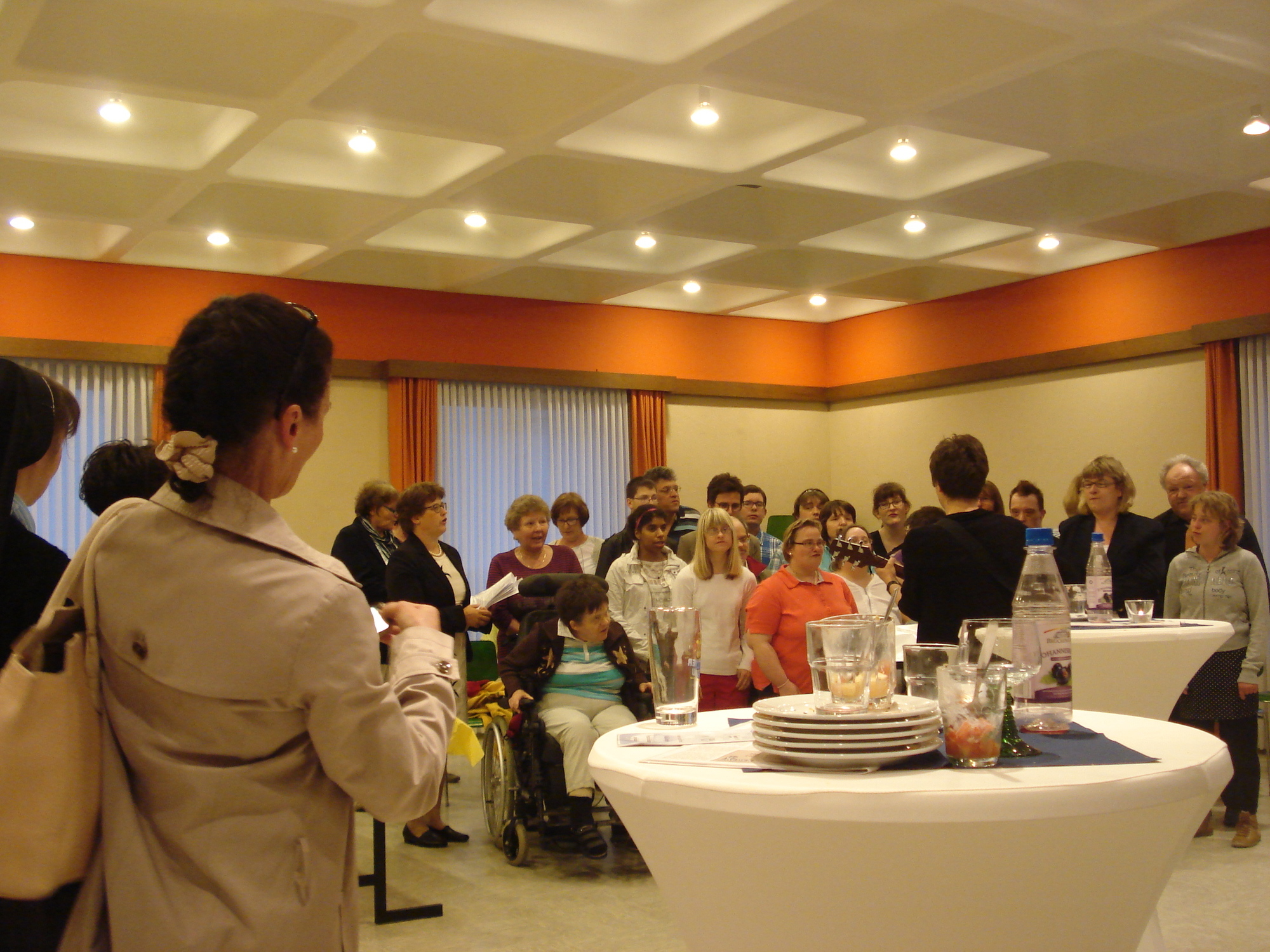 4 MitarbeiterInnen des GesprächsLadens feierten das 10jährige Bestehen des Kontaktpunktes in Bad Kissingen mit und hatten richtig Spaß dabei. Seit Eröffnung der Einrichtung vor 10 Jahren sind - so Rainer Ziegler, der Leiter des Kontaktpunktes - "tausende von Dienststunden geleistet, unzählige Gespräche geführt und viele hilfreiche Informationen weitergegeben worden". Eingangs feierten die Besucherinnen und Besucher einen Gottesdienst in der Stadtpfarrkirche (Festprediger: Domkapitular Christoph Warmuth). Daran schloss sich ein Empfang mit lebendigen Gesprächen, köstlichen Speisen, Rückblick und Erinnerung an. Den festlichen Rahmen "vergoldeten" der Chor der OBA Bad Kissingen und die Veeh-Harfengruppe, Werkstatt Nüdlingen der Lebenshilfe Schweinfurt. Alles in allem ein erlebnisreicher, wunderbar-geselliger Abend - verbunden mit Dank und zahlreichen Glück- und Segenswünschen für eine fruchtbare, gelingende Weiterarbeit im Dienst an den Menschen.