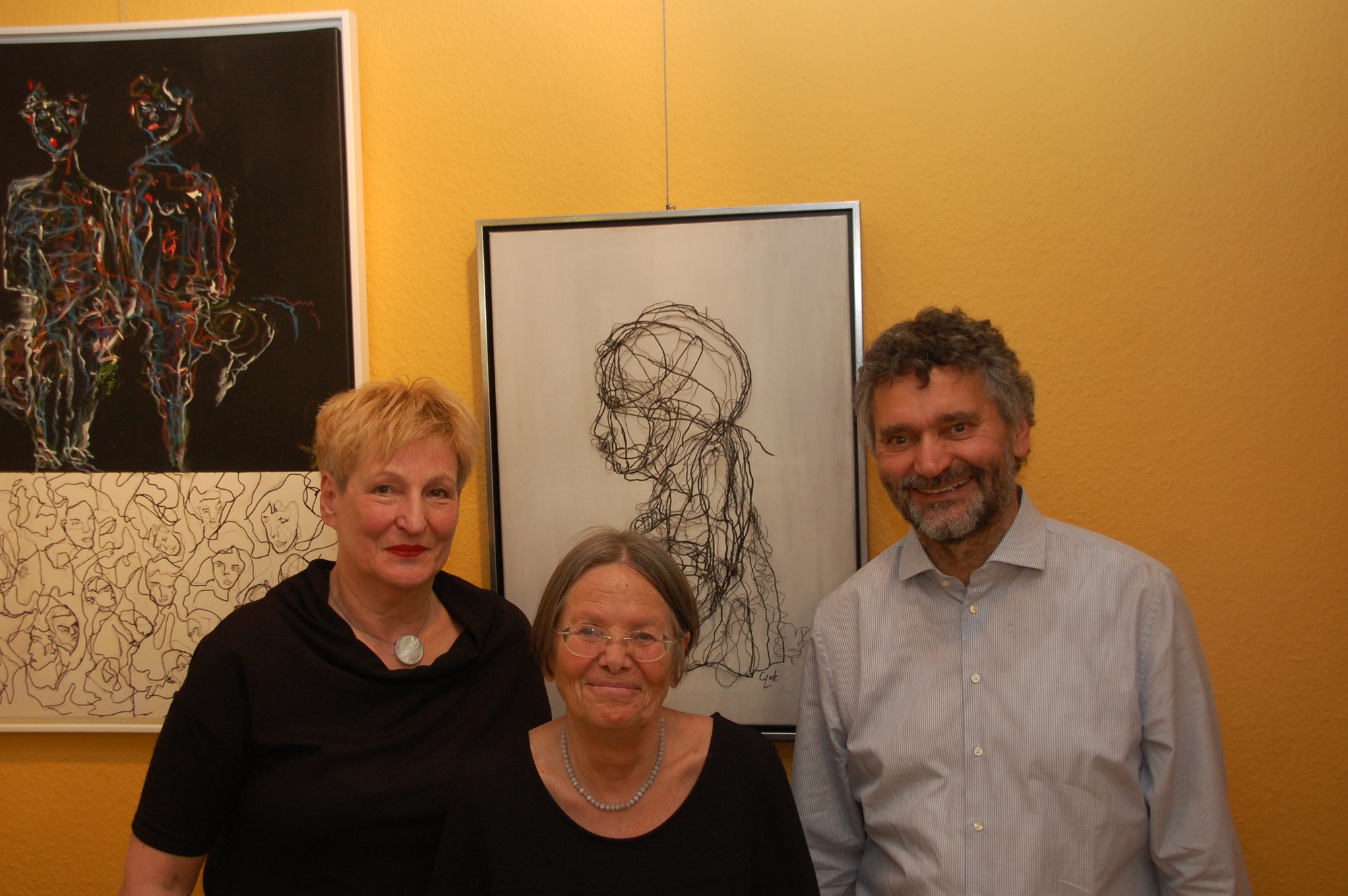 "Kunst macht Sinn": Diese Aussage stand im Mittelpunkt der Einführungsrede von Frauke Fülling. Es gehe um eine "geistige Empfänglichkeit für das Schöne und Gute und Heilige". Kunst sei ein "Medium, durch das die Welt oder eine Idee gesehen und dargestellt werden kann." - "Im Dargestellten, im Bild" - so Fülling - "begegnet der Mensch der Welt im Außen und bringt sie mit der eigenen Wahrnehmung in Kontakt. Es entsteht eine Beziehung, ein Berührtsein, in dem die ganze Welt des Betrachters mitschwingt." ... "Beim Betrachter wie beim Schöpfer eines Kunstwerkes können ähnliche Prozesse ablaufen: Etwas, was mich ins Gleichgewicht oder aus dem Gleichgewicht bringt, etwas, das mich bewegt, in mir arbeitet, was mir Halt gibt und mich stützt... So wirke Kunst auch 'therapeutisch'".