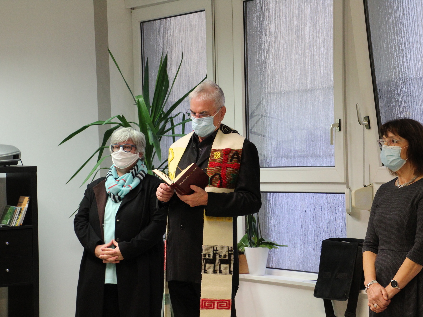 Ende Oktober wurden in einer kleinen, aber feinen Feier die neuen Räumlichkeiten des GesprächsLadens am Markt gesegnet: der Empfang mit dem großen Schaufenster, die beiden Gesprächszimmer und der Gruppenraum. Stadtpfarrer Joachim Morgenroth wünschte, dass hier segensreiche Gespräche stattfinden, Menschen getröstet werden und Orientierung finden. Bürgermeisterin Sorya Lippert gratulierte im Namen der Stadt und sagte, dass Schweinfurt stolz ist auf diese offene und niederschwellige Einrichtung und würde sich freuen, wenn das Gesprächsangebot gut genutzt werde.