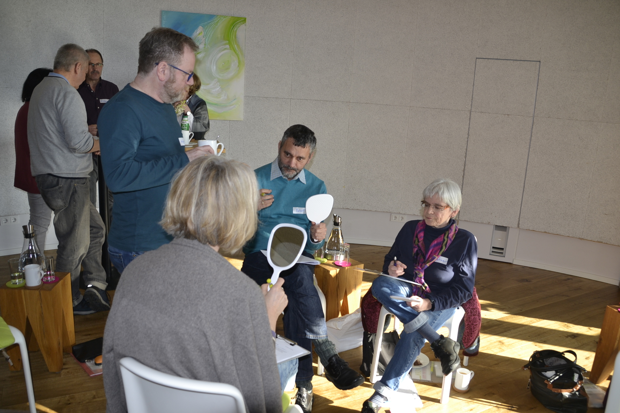 Am Samstag, den 3. Februar 2018 traf sich das Team des GesprächsLadens zu einer Fortbildung im "CoachingHAUS" in Wülfershausen, nahe bei Bad Neustadt (Rhön). Aus dem umfangreichen "Methodenkoffer", den das Haus "ErFRISCHEND anders" anbietet, hatten die Teammitglieder die "MimikResonanz" ausgewählt. Dazu hatte es in der Ausschreibung geheißen: "Zu erkennen, wie sich Ihr Gegenüber fühlt und damit angemessen umzugehen, ist eine der wichtigsten Fähigkeiten für den Aufbau einer guten Beziehung und für den Erfolg eines jeden Gesprächs. Diese Fähigkeit weiter auszubauen steht im Mittelpunkt des Mimikresonanz-Trainings. Die Mimik eignet sich wie kein anderer Bereich dazu, denn sie kann das volle Spektrum unserer Emotionen abbilden - sie ist die Bühne unserer Gefühle. Gleichzeitig ist sie der am besten beforschte Bereich der Körpersprache." (Siehe: erfrischend-anders.info). Kompetente Anleiterin und Begleiterin durch den Tag war die Chefin des Coachinghauses Alexandra Bilko-Pflaugner. Mimische Signale zu erkennen, sie richtig zu deuten und die durch genaue Beobachtung gewonnenen Erkenntnisse auch entwicklungsfördernd zu nutzen: solcherlei Kompetenz gehört unbestritten und wesentlich auch zum helfendem Gespräch, wie es die MitarbeiterInnen des GesprächsLadens anbieten. Mimik "lesen" bedeutet eben, noch besser Gefühle und Wünsche des Gegenübers wahrnehmen, ihn/sie besser verstehen. Am Ende zeigten sich die Mitglieder unseres Teams ausnahmslos dankbar für das Erlernte, für die gute Arbeitsatmosphäre und für das gastfreundliche Ambiente!